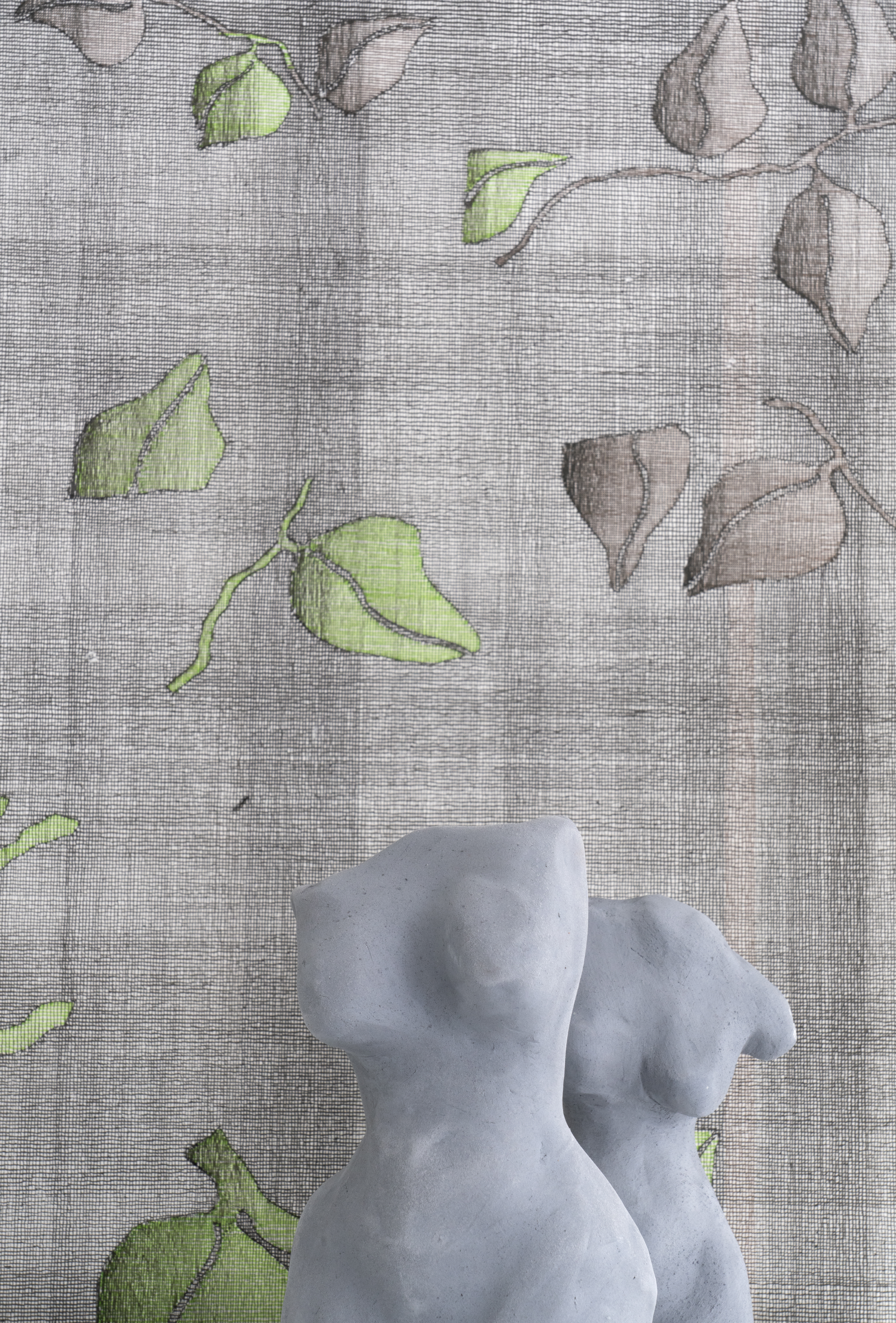 I Bergot sine torsoer er det kvinnekroppen som utforskes, gjennom fiktive kvinneskikkelser gjengitt i ulike typer steingods og leire. Det fiktive finnes også i Torild sine tegninger, der inspirasjonen er hentet fra DNA-strukturer og organiske naturformer. Bergot undersøker kroppen slik den fremstår fysisk, og gjennom det vi ser utenpå, mens Torild kikker bakom kroppen, og er opptatt av strukturer og prosesser som foregår på innsiden. I begges arbeid dukker blad-former opp, i tusjtegninger og i leire. Både Torild og Bergot produserer sine arbeider gjennom et møysommelig arbeid, der form og linjer bygges gradvis opp gjennom håndens bearbeidelse og tilstedeværelse. Kontemplasjon og tid er aspekter som er til stede hos begge. Hjertelig velkommen til duo-utstilling!